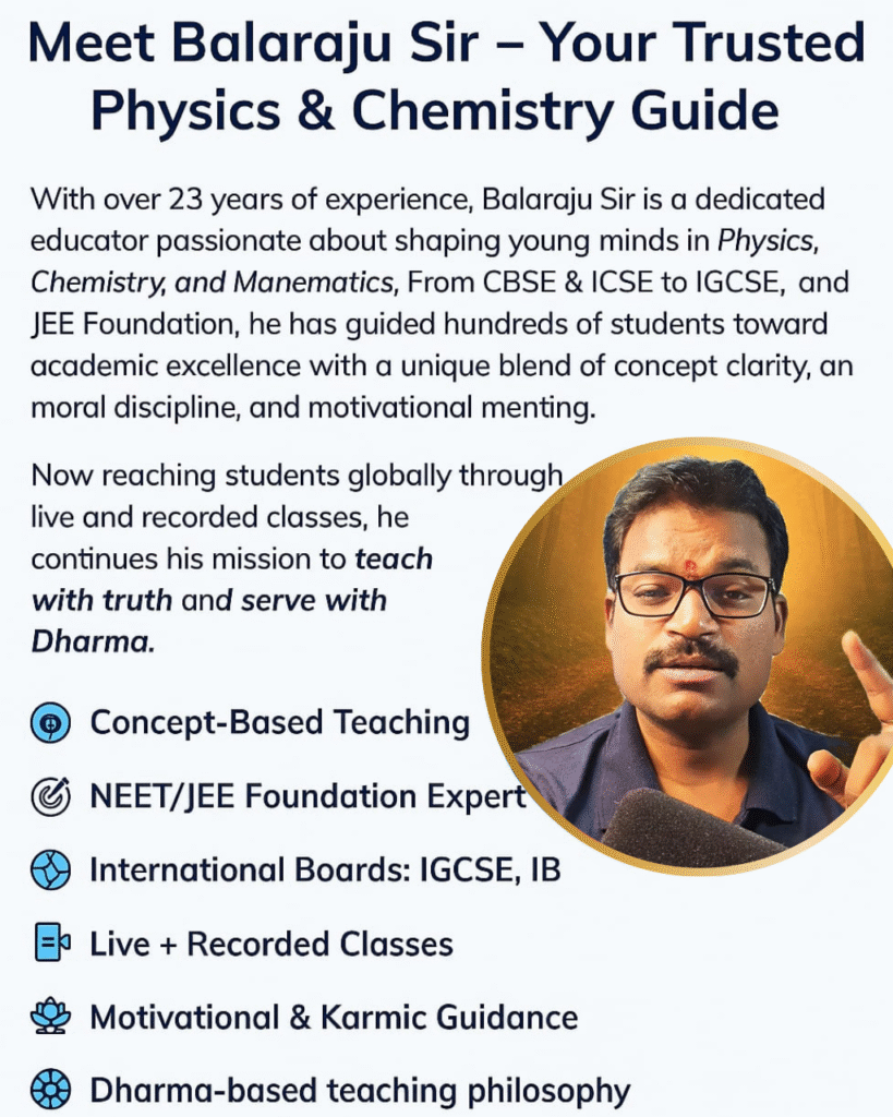 “About Balaraju Sir – Global Educator for Physics, Chemistry & Dharma-based Learning”